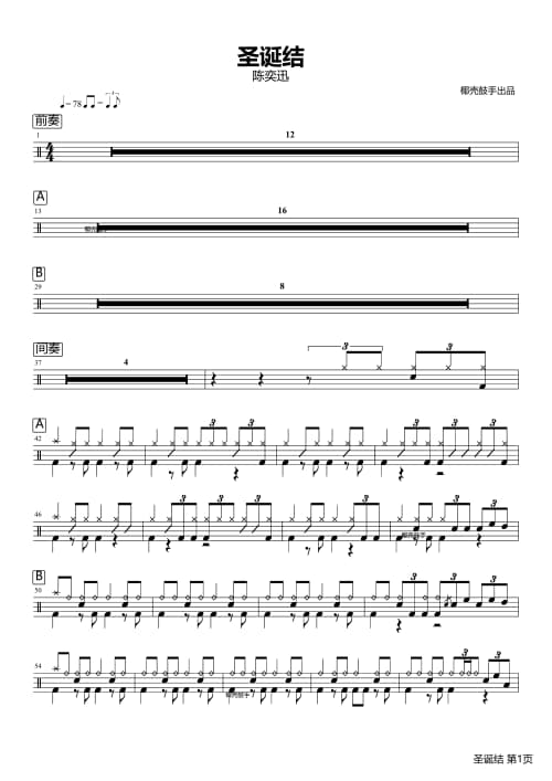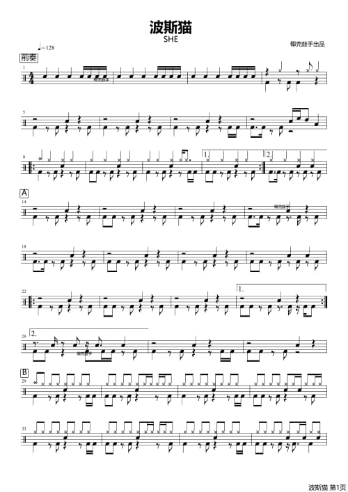 本站分享采蘑菇的小姑娘架子鼓谱仅为第一页普通清晰版获取采蘑菇的小姑娘高清完整版鼓谱可