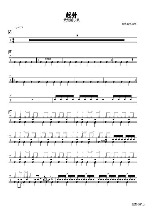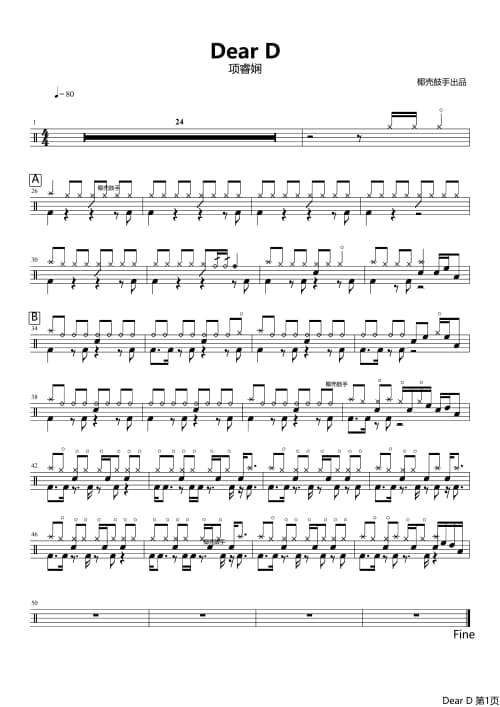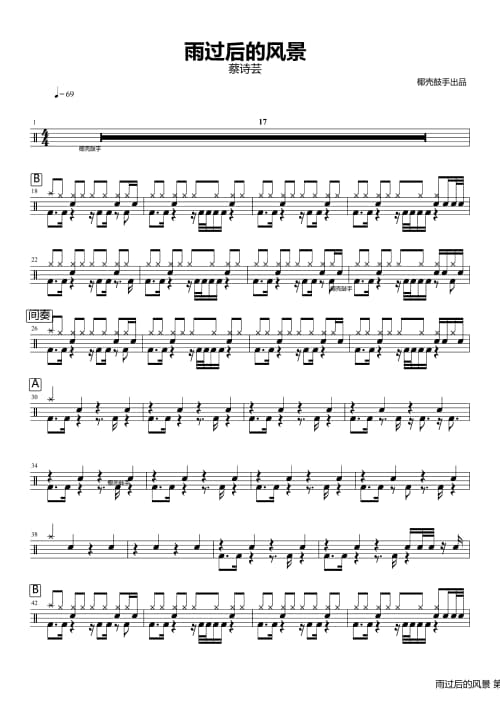 本站分享往后余生架子鼓谱仅为第一页普通清晰版获取往后余生高清完整版鼓谱可