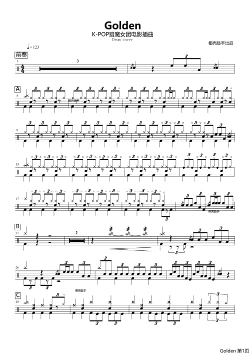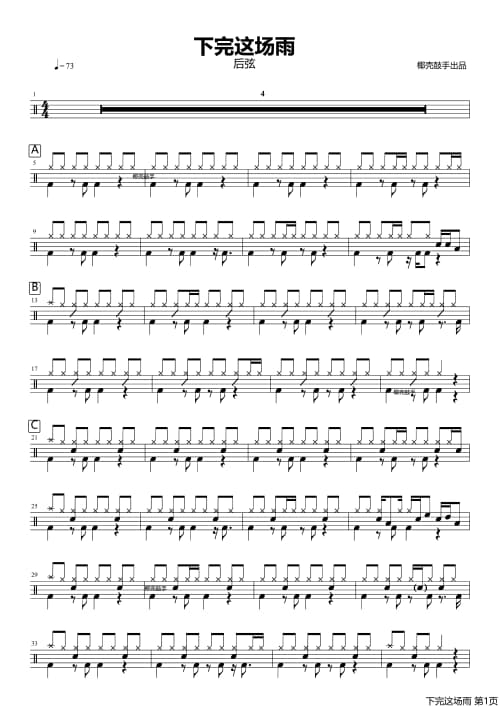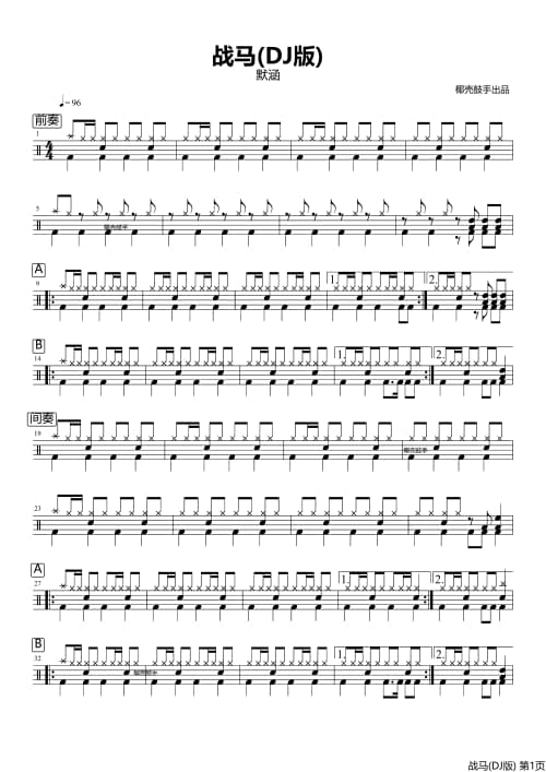 本站分享葫芦娃架子鼓谱仅为第一页普通清晰版获取葫芦娃高清完整版鼓谱可