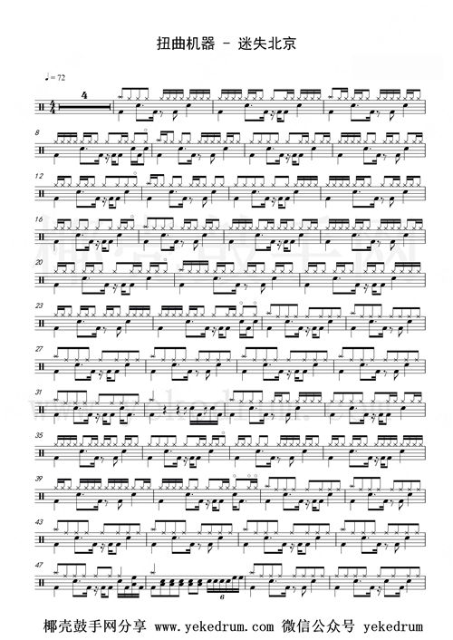 本站分享迷失北京架子鼓谱仅为第一页普通清晰版获取迷失北京高清完整版鼓谱可