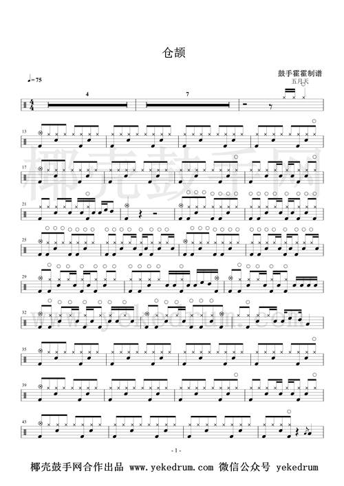 本站分享仓颉架子鼓谱仅为第一页普通清晰版获取仓颉高清完整版鼓谱可