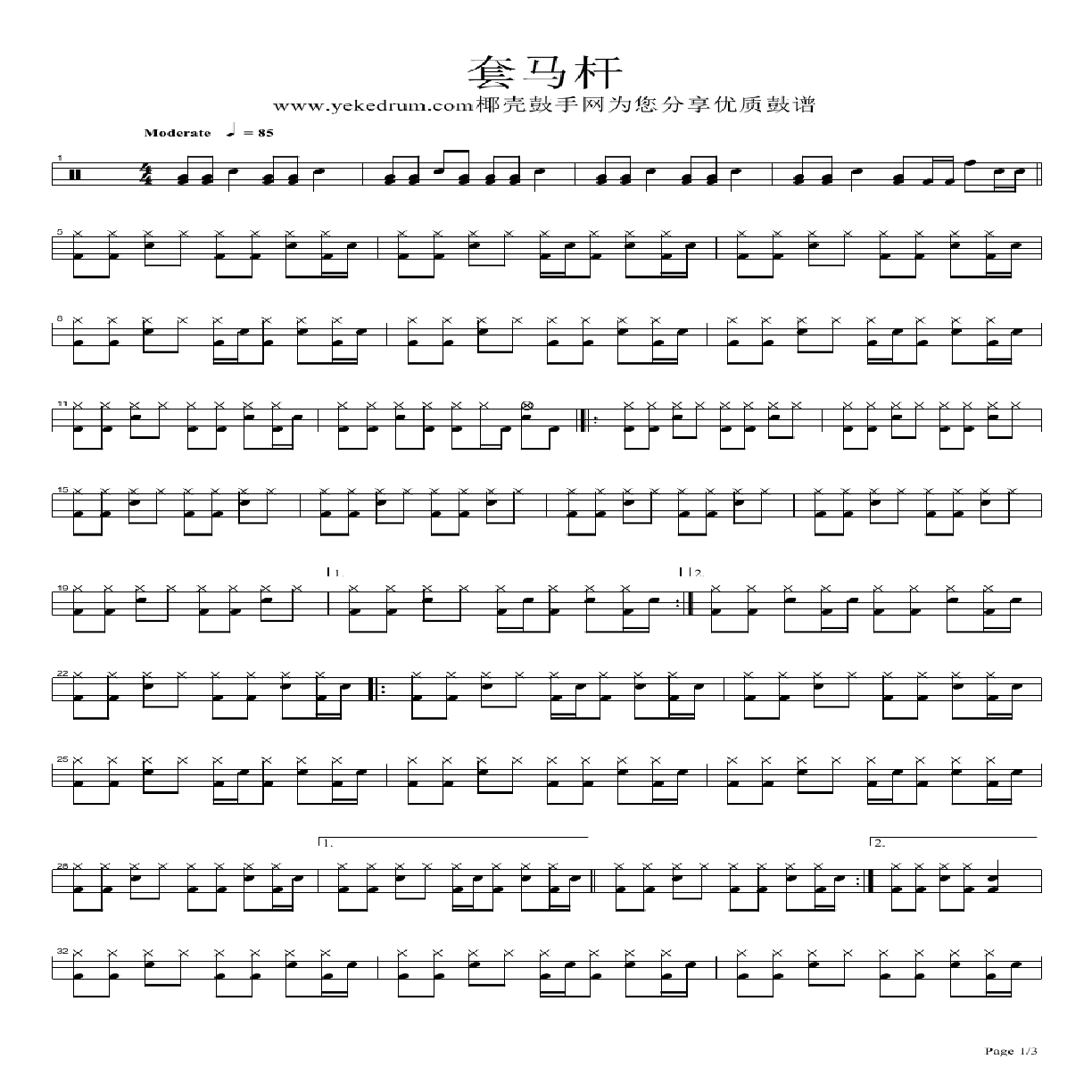 套马杆鼓谱是由椰壳鼓谱网分享,套马杆架子鼓谱共分为三页,大家也可以下载套马杆鼓谱清晰版用来练习。歌曲套马杆是由冠以草原天籁"的美誉的民族歌手乌兰托娅演唱。,0