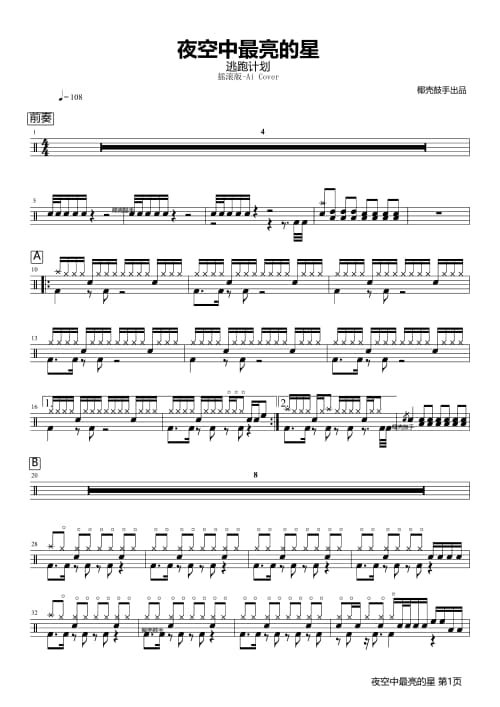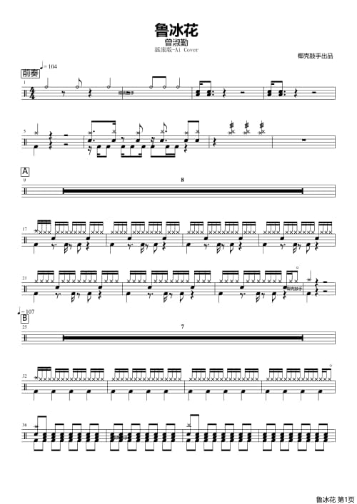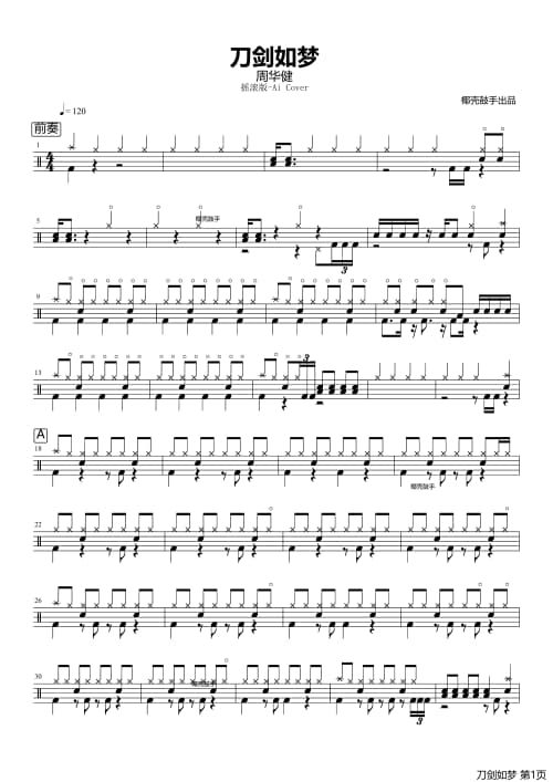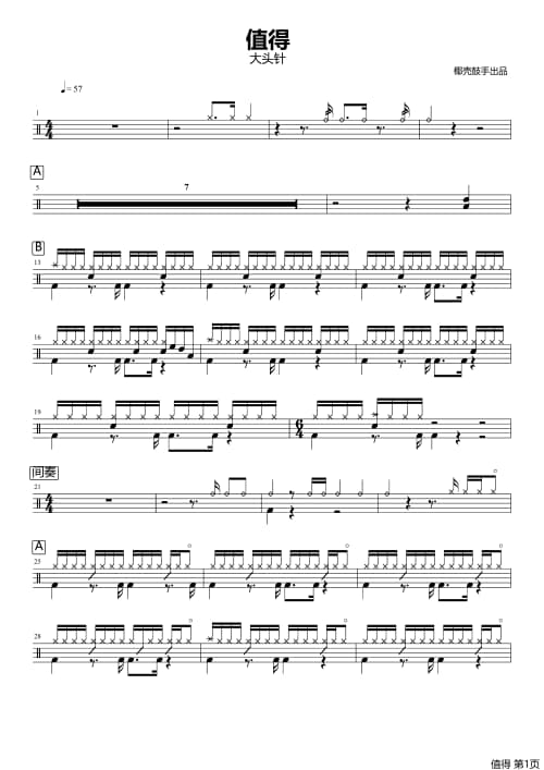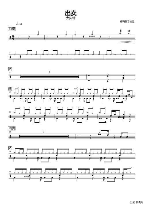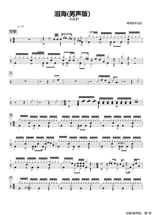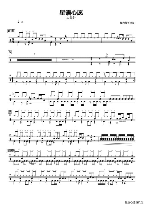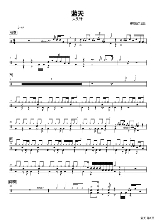 本站分享海阔天空架子鼓谱仅为第一页普通清晰版获取海阔天空高清完整版鼓谱可