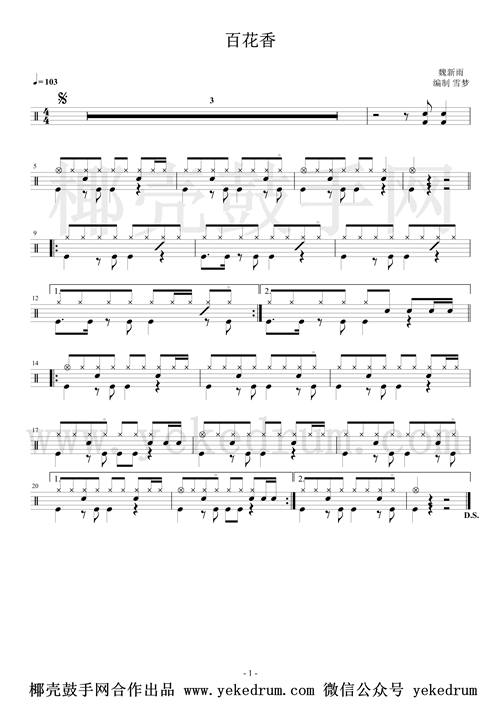 本站分享百花香架子鼓谱仅为第一页普通清晰版获取百花香高清完整版鼓谱可