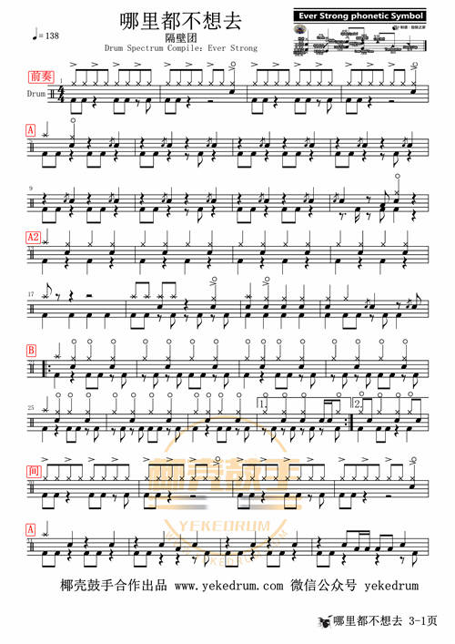 本站分享哪里都不想去架子鼓谱仅为第一页普通清晰版获取哪里都不想去高清完整版鼓谱可