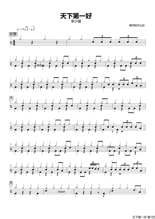 本站分享快乐的人请举手架子鼓谱仅为第一页普通清晰版获取快乐的人请举手高清完整版鼓谱可