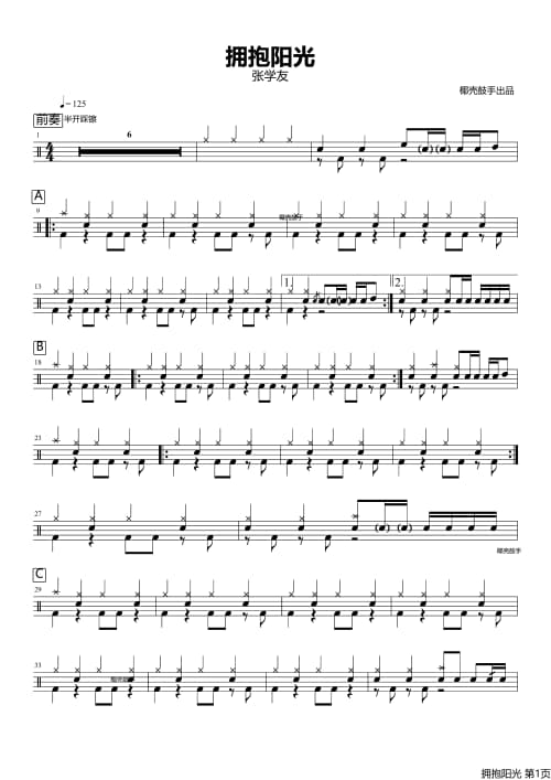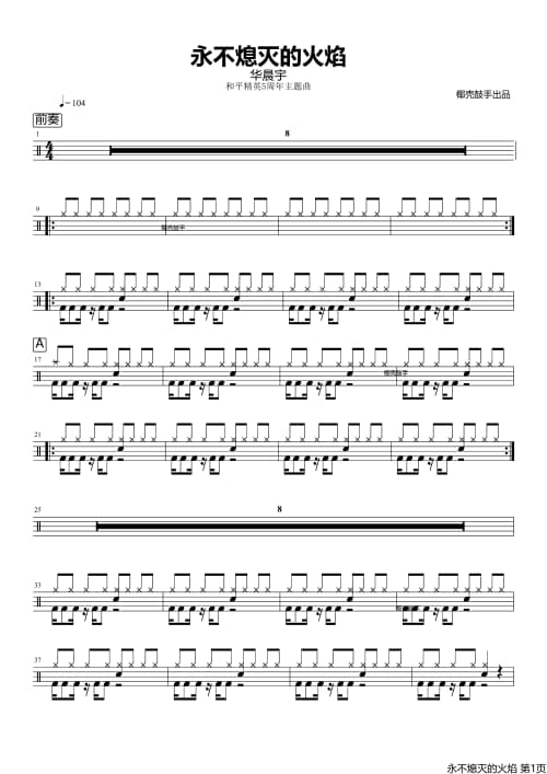 本站分享梦的光点架子鼓谱仅为第一页普通清晰版获取梦的光点高清完整版鼓谱可